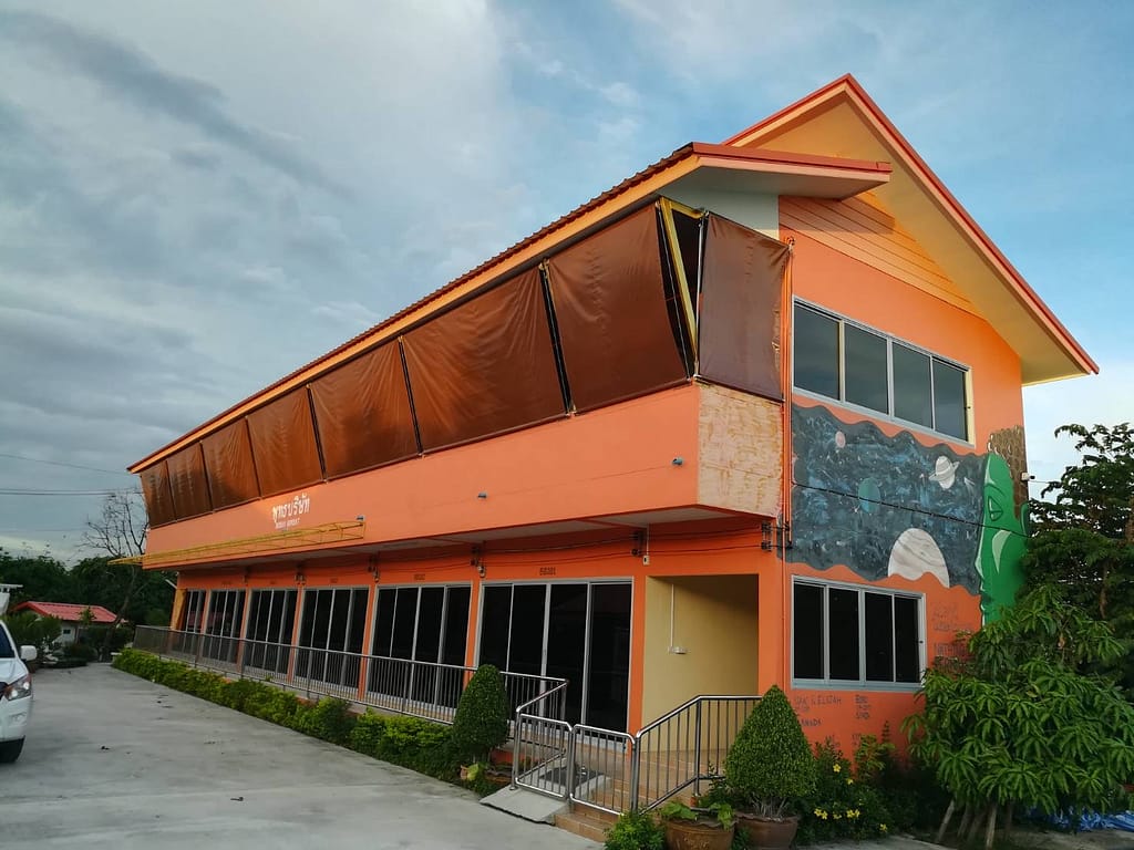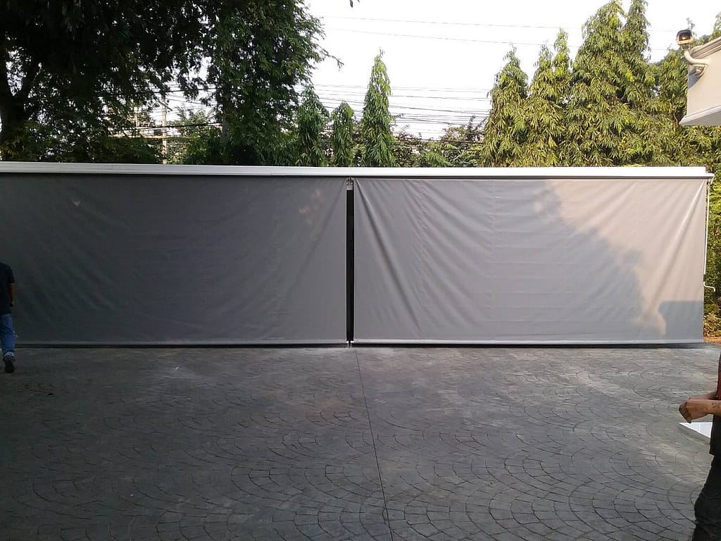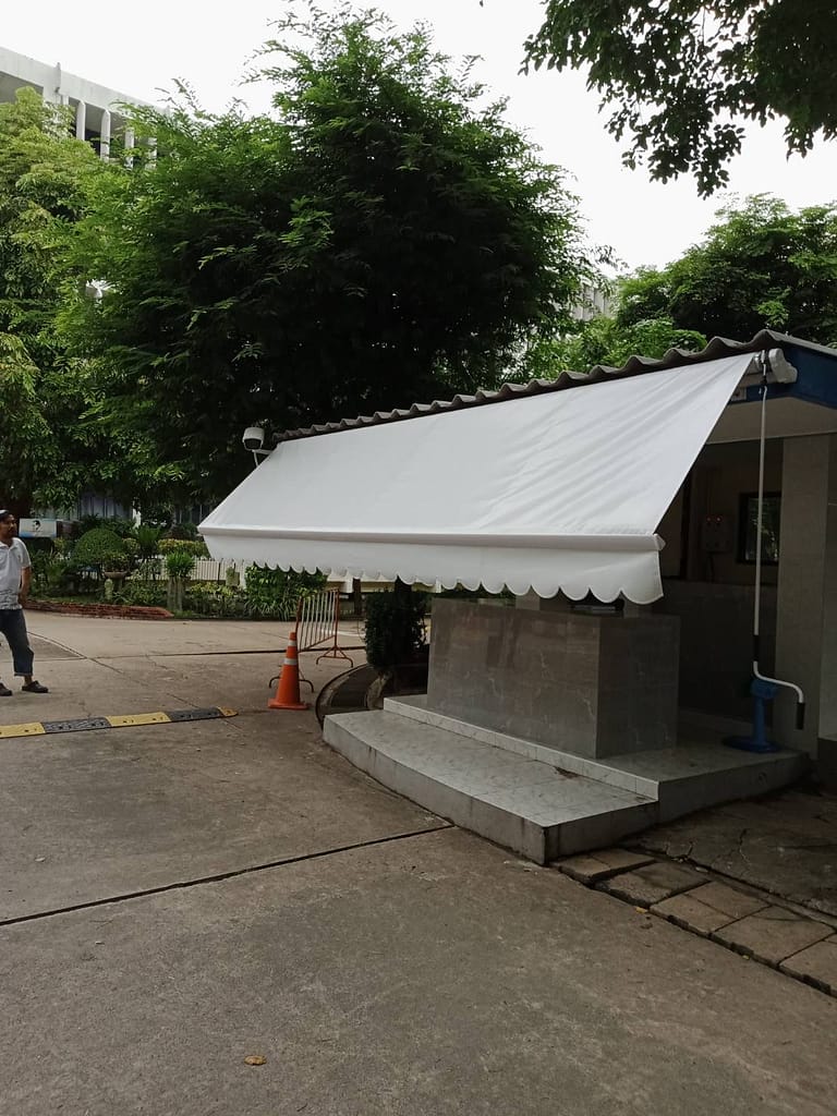 - ผ้าใบซันสกรีน (Sunscreen Fabric) เป็นผ้านำเข้าจากอเมริกา มีความทนทานสูง น้ำไม่ขังบนเนื้อผ้า และ สามารถตัดแสงได้