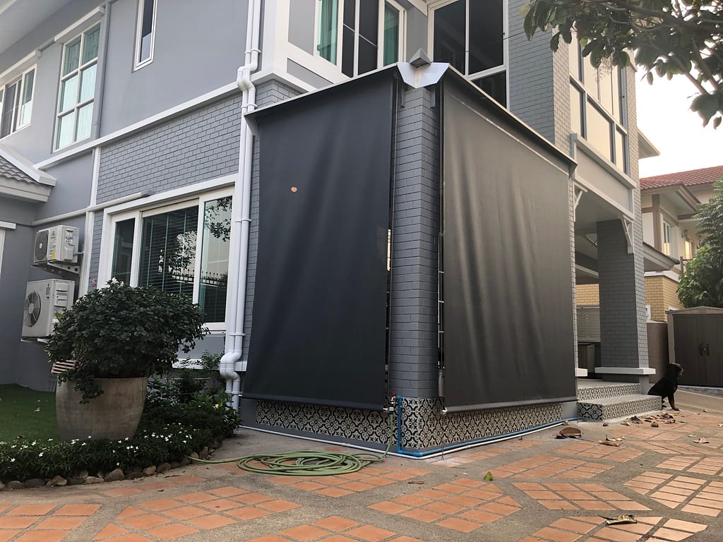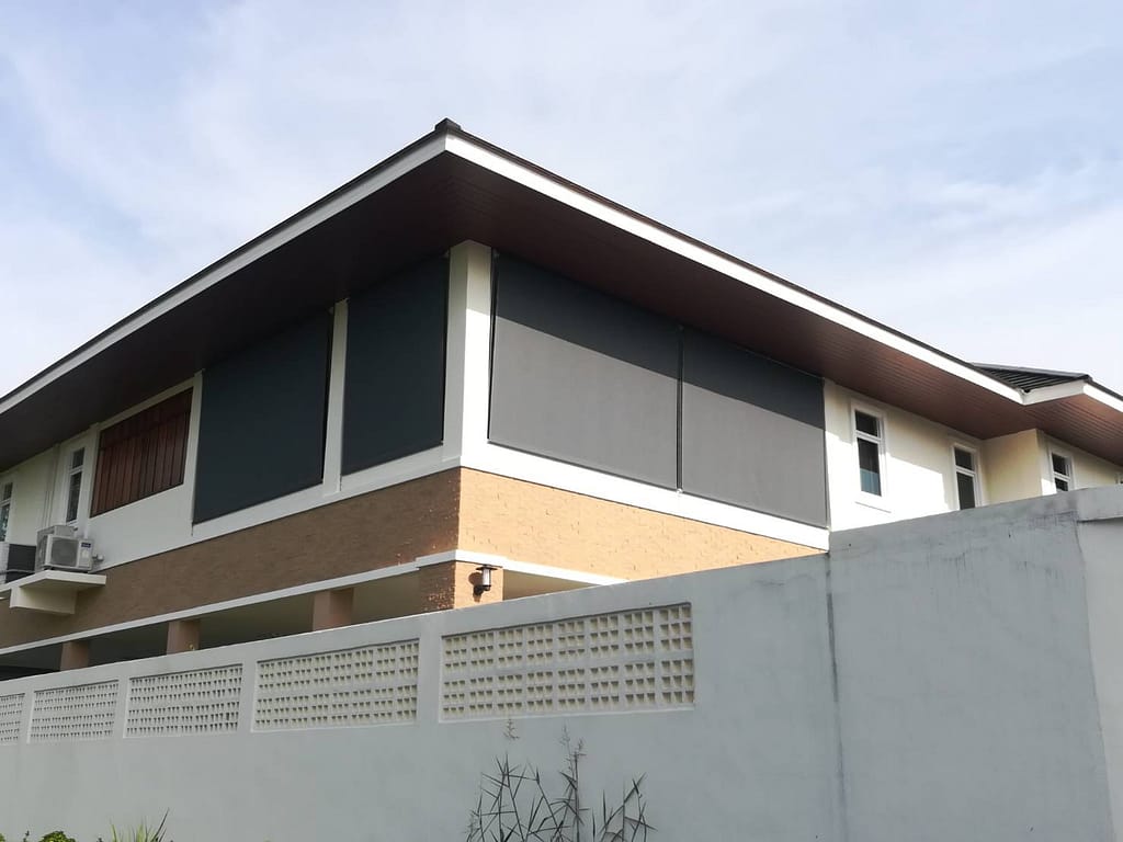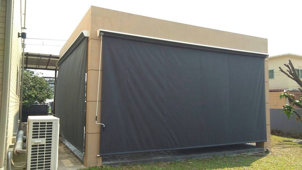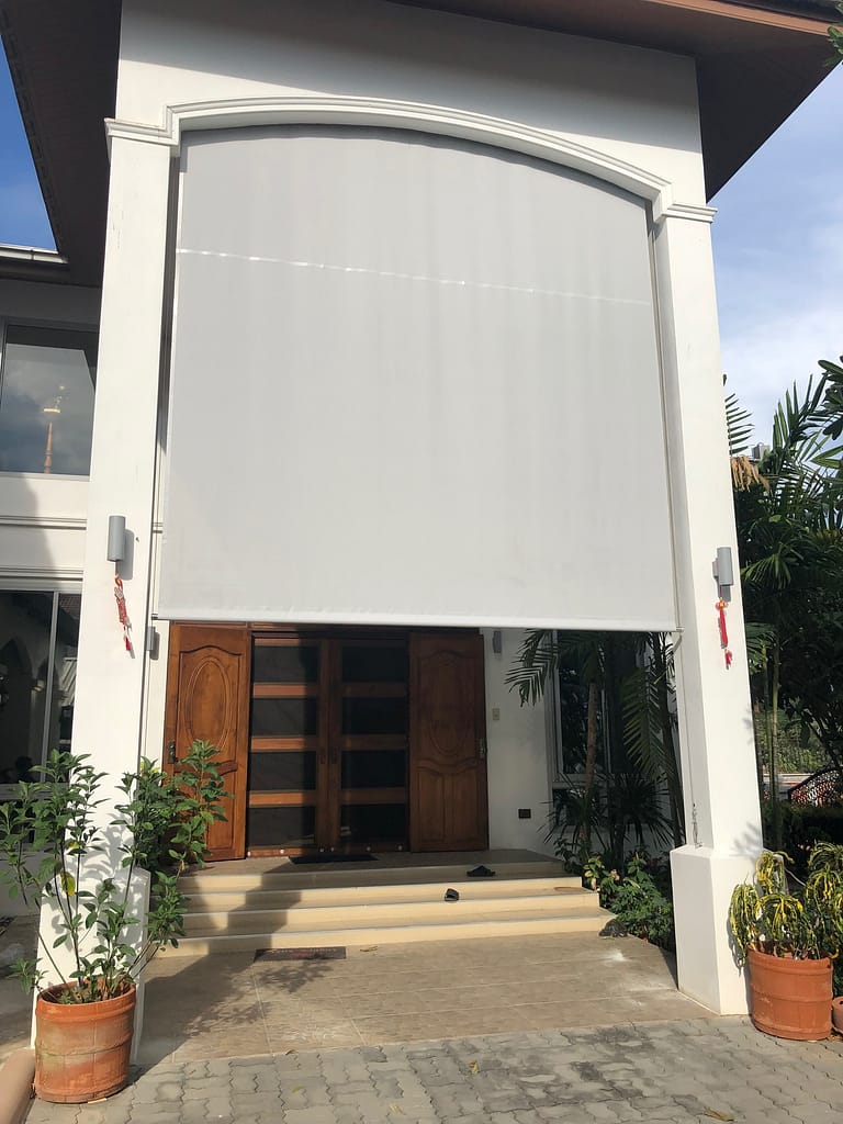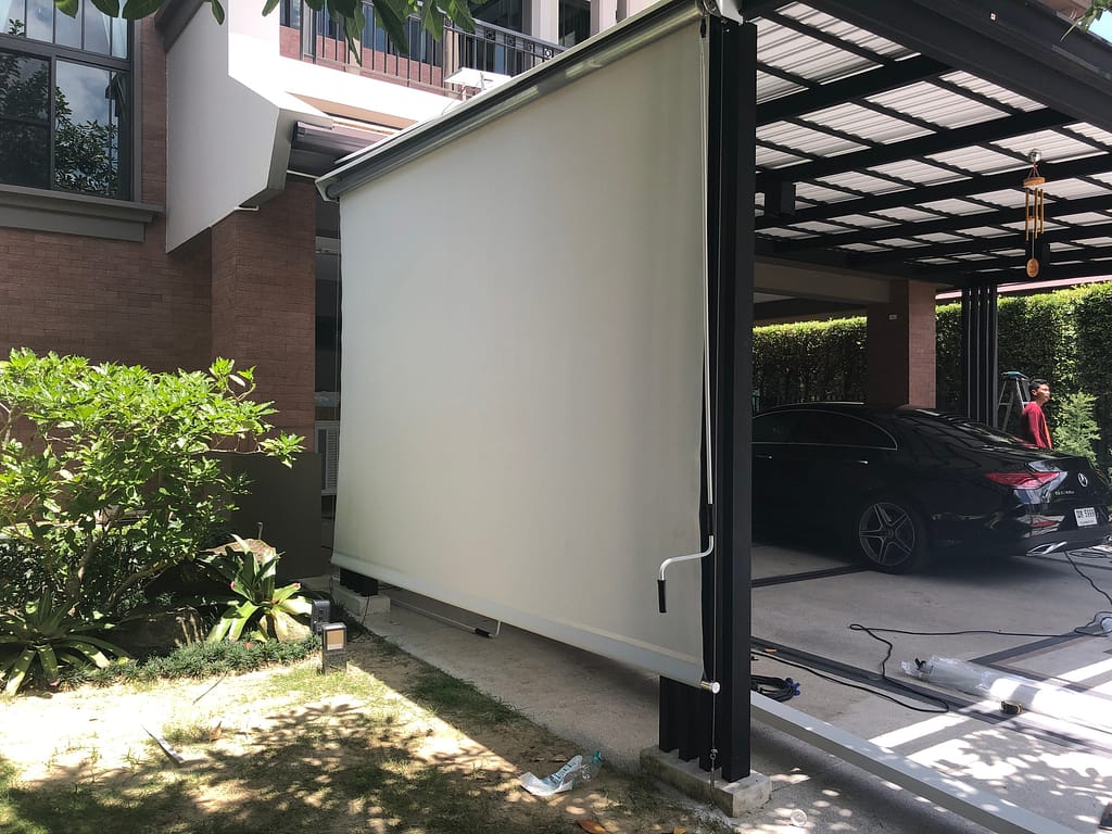 - ผ้าใบซันสกรีน เป็นผ้านำเข้าจากอเมริกา มีความทนทานสูง น้ำไม่ขังบนเนื้อผ้า และ สามารถตัดแสงได้